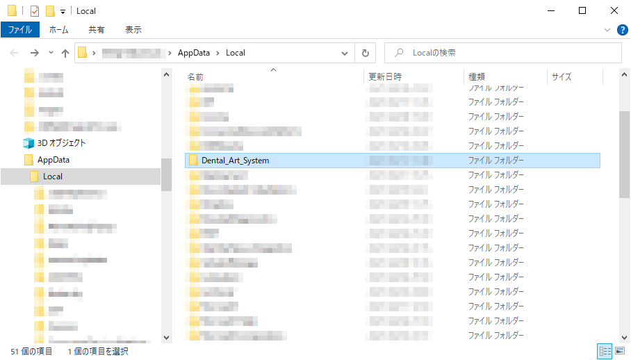 - 「Dental_Art_System」というフォルダを探して、フォルダごと削除します。