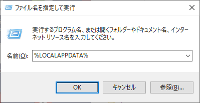 - 名前欄に「%LOCALAPPDATA%」と入力して[OK]をクリックします。