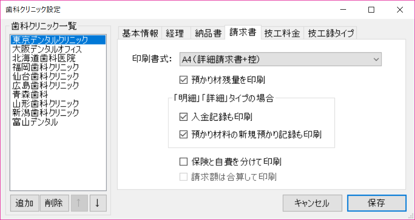 印刷様式、保険と自費を分けて印刷、入金や預かり材料の印刷有無なども調整可能です。